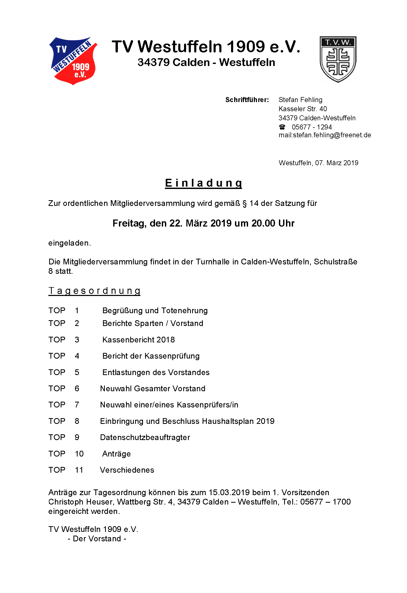 in der Turnhalle des TVW, Schulstraße 8, 34379 Calden-Westuffeln statt.
